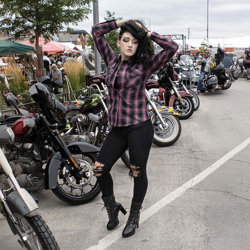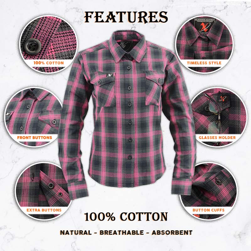 Milwaukee Leather MNG21619 Women's Black and Purple Long Sleeve Cotton Flannel Shirt