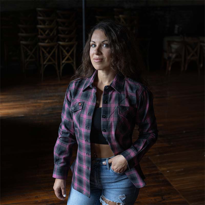 Hot Leathers FLL3010 Ladies Purple, White and Black Long Sleeve Flannel Shirt