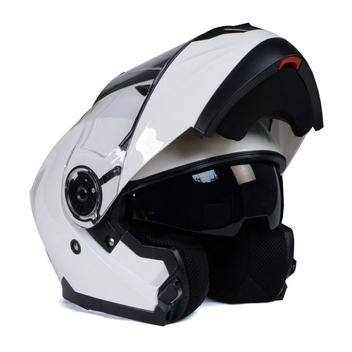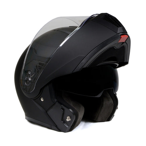 Modular Helmets look almost identical to full-face, but are actually a mixture of full-face and open-face, with a front chin-guard and visor that flips up to expose the whole of your face. While not offering as much protection as full face due to their flip mechanisms, they still offer a large amount of safety for all riders. Some modular motorcycle helmets allow the rider to remove the whole front piece and reattach it later as needed. Some also include separate visors for when the front piece is flipped up so that the rider is still protected from glaring sun while also having maximum airflow.