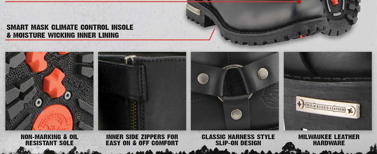 Milwaukee Leather Men's Black 11-Inch Classic Engineer Motorcycle Leather Boots MBM9020