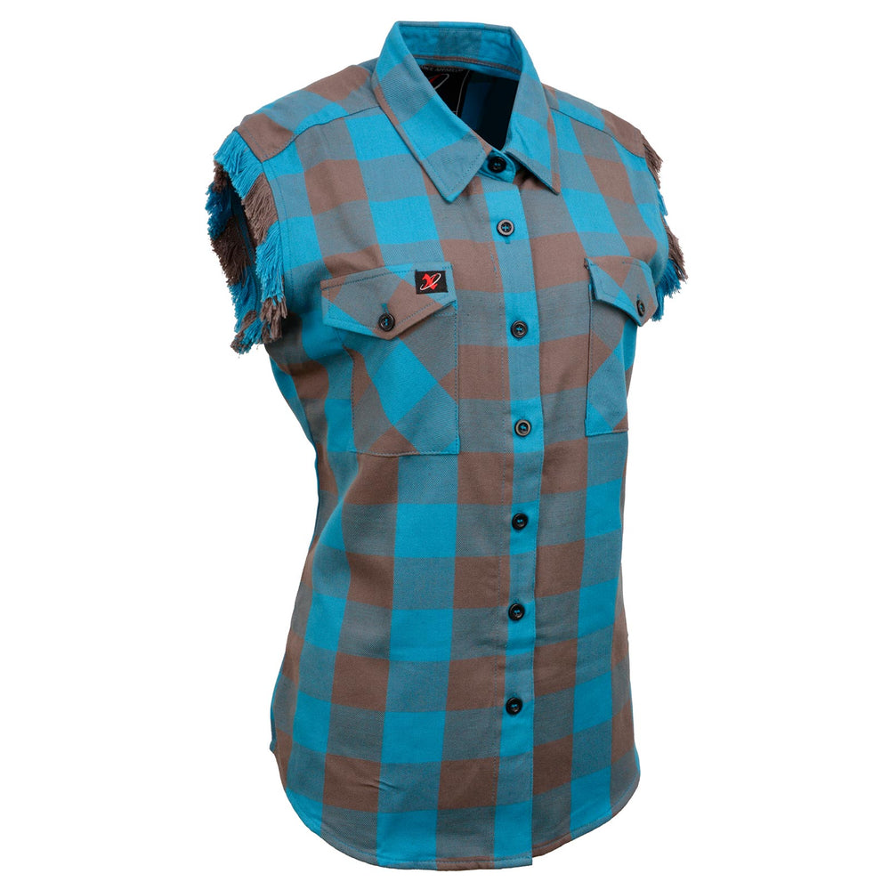 Milwaukee Leather MNG21617 Women's Black and Aqua Long Sleeve Cotton Flannel Shirt