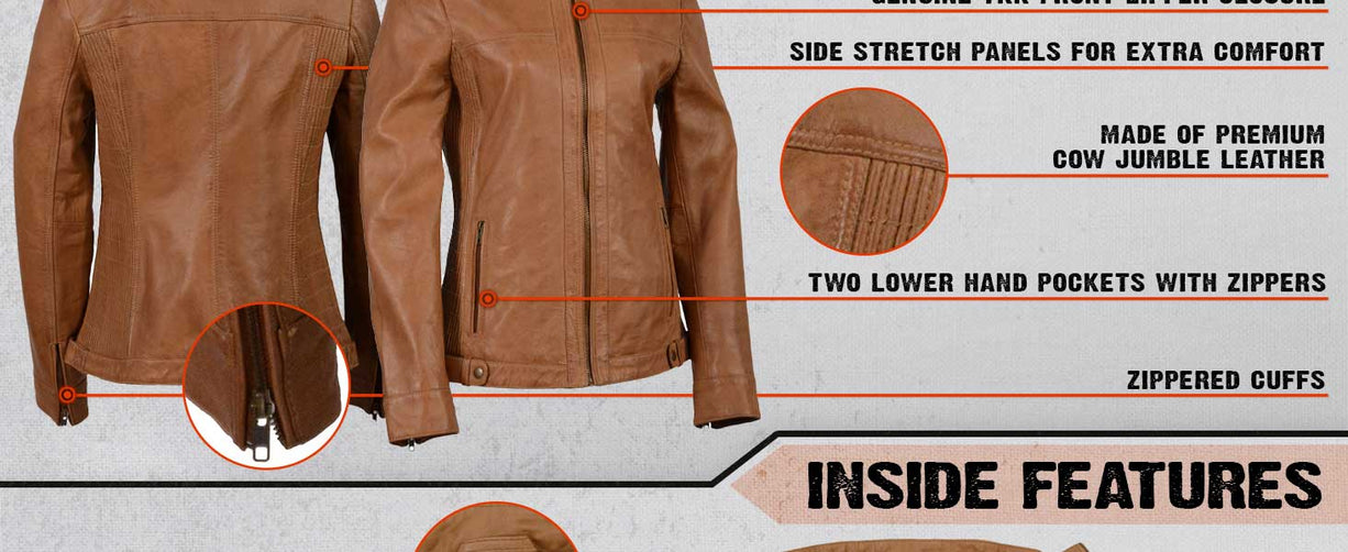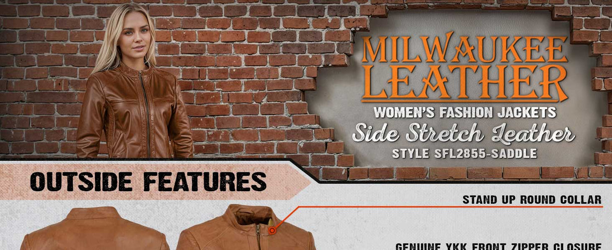 Milwaukee Leather SFL2860 Women's Saddle Zip Front Stand Up Collar Leather Jacket